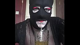 Chastity slut drinks their own piss