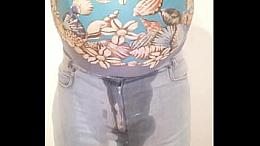 Crossdresser piss in sexy Jeans and pantyhose