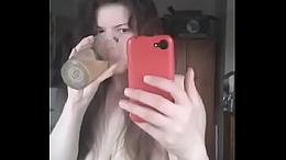 Piss Drinking - Barbe tastes her own warm piss during solo toy play