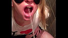Jenifer Jane and Jesica Bell piss into champagne glasses and drink them